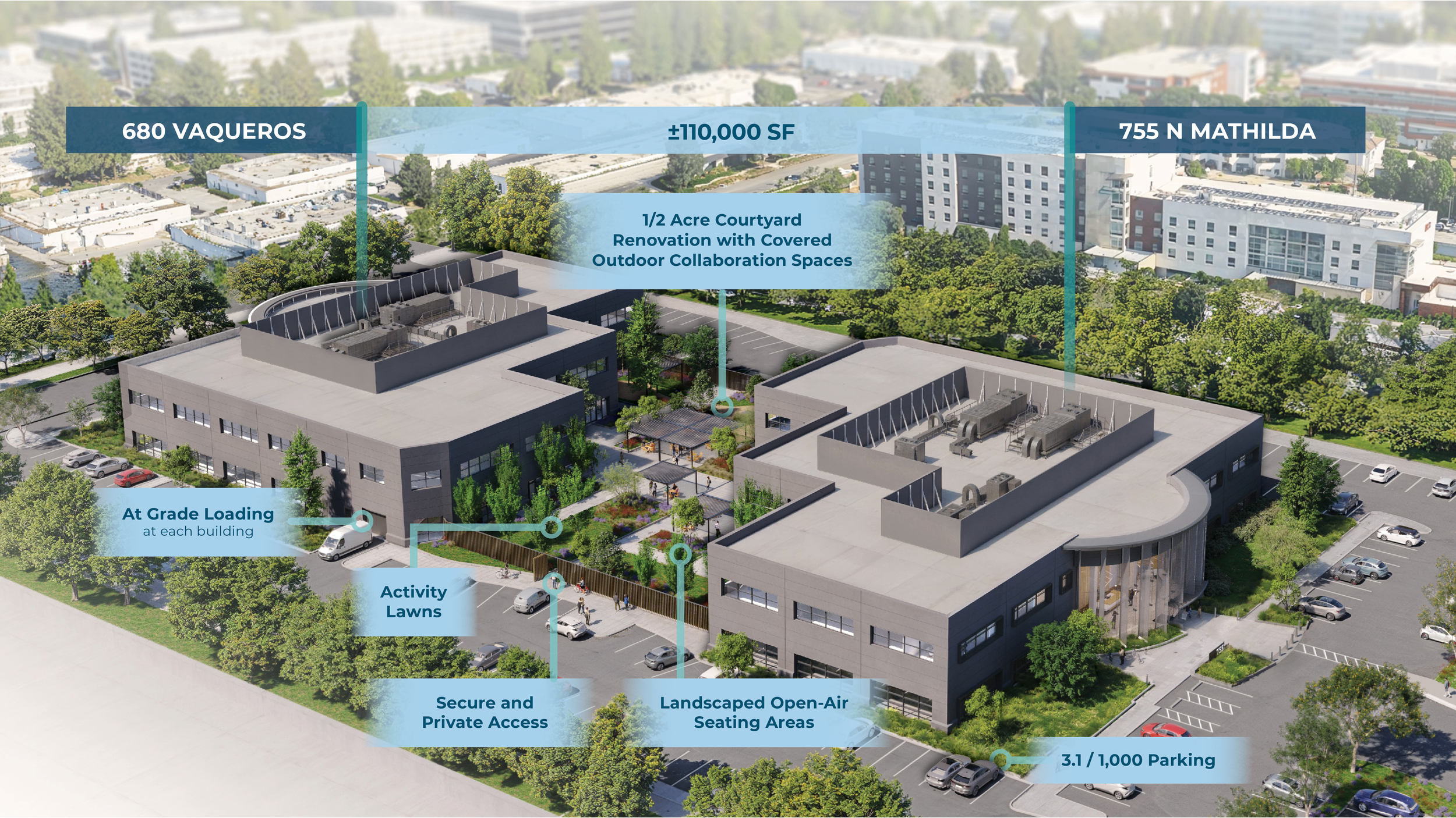 Mathilda Park is transforming into a next-gen Class A Office/R&D campus in Sunnyvale’s Peery Park. With modernized facades, new lobbies, and a secure new courtyard, every upgrade supports collaboration, focus, and growth—delivering a private, light-filled environment for teams shaping what’s next.